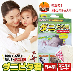 【発送情報】:【11月5日頃より順次出荷】【商品名】ダニピタ君(3枚入り) 新しいダニ捕りシート、ダニ取りシート 、ダニ捕りマット【日本製】 ・新登場 お試し用3枚入り ・殺虫剤を使用していないのでお子様やペットのいるご家庭も