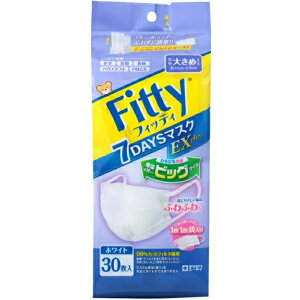 こちらの商品は【宅配便】でお届けいたします。 品 名 フィッティ 7DAYSマスク EXプラス ホワイト 30枚入(個別包装・マスク用スタンドケース付き) 素材 ●本体・フィルタ部:ポリプロピレン ●耳ひも部:ナイロン...