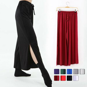 フィットネス ダンスパンツ レディース用ヨガパンツ ゆったりヨガラテンバレエダンス衣装 スリット入りワイドパンツ 社交ダンス衣装 春夏秋冬 ストレッチ練習着レッスン着 バレエウエア