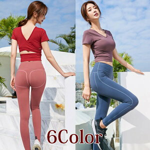 速乾性スポーツウェア上下セット背中のデザインが魅力的な半袖Tシャツとレギンスのセットです。シンプルなフロントデザインに背中が美しく見えるクロスビューティバックデザインで動きやすい快適な着心地です。レギンスパンツは高弾性
