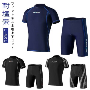 フィットネス水着上下セット耐塩素L-4XLメンズフィットネス水着上下2点セットです。・日焼け対策露出を控えて、紫外線からお肌を守ります・耐塩素プールで長時間泳いでも安心できます・立体裁断・程よいフィット感流線型で水の抵抗を減