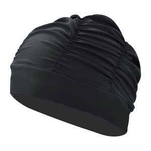 \50%offクーポン有/ 楽天1位 レディース スイムキャップ 黒 容量大きめ ロングヘアー 対応 長い髪 締め付け緩め ジム プール ウォーキング 水泳 運動 水泳帽 スイミングキャップ 帽子 ゆったり ゴム 伸縮ナイロン 幅広 ...