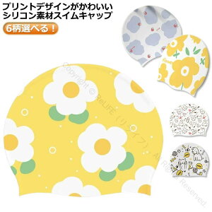 6柄選べる!プリントデザインがかわいいシリコン素材スイムキャップ水の抵抗を受けにくく、プールの塩素で髪の毛が痛みづらいシリコン素材!気になる紫外線や塩素から髪の毛を守ります。やわらかくてかぶりやすい!しめつけないから、