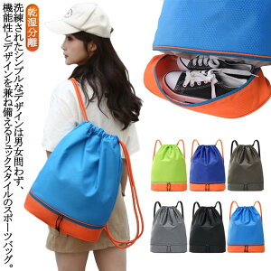 洗練されたシンプルなデザインは男女問わず、機能性とデザインを兼ね備えるリュックスタイルのスポーツバッグ。乾湿分離:内部に防水素材で作られたポケットが2つあり、濡れたものを収納してもバッグの外側に水分が漏れ出ることがあり