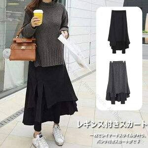 と裏毛起毛なし素材を2種類使用をしています。モダンなレイヤードスタイルがこの1枚で叶う、画期的なレギンス付きスカートです。スカートを穿きたいけれど脚を出したくない、大人の