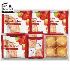 商品名 あまおう苺バウムクーヘン&プチフィナンシェ(FAO-20RD) 商品内容 あまおう苺バウムクーヘン×4、プチフィナンシェ4個入(プレーン)×1、焼きほろろクッキー(イチゴ)×2 商品説明 国産...