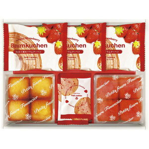 商品名 ■あまおう苺バウムクーヘン&プチフィナンシェ FAO-30RD 商品内容 ■あまおう苺バウムクーヘン×4、プチフィナンシェ4個入(プレーン×2、あまおう苺×1)、焼きほろろクッキー(イチゴ)×3...