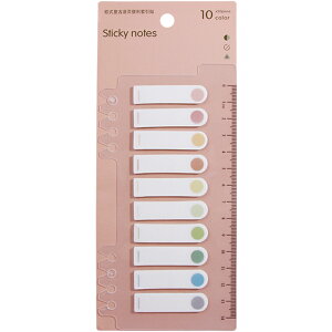 優しいアースカラーを使用した付箋のセット。 10色入りなので、それぞれ色分けして使用することも可能。定規模様の長方形ノートフラグ付き。 しっかり貼れて、綺麗にはがせます。 また、表面に文字を書くことも可能で...