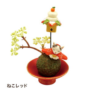ネコとウサギのお正月をモチーフにしたオブジェ。フェイクグリーンの苔玉にも癒やされます。【サイズ】ねこレッド:約幅75×奥行62×高さ110mmねこブラック:約幅75×奥行62×高さ105mmうさぎレッ...