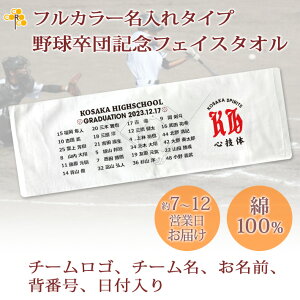 団体名が入るデザインのタオル タオルは日本有数のタオル産地、今治製の最高級品質。またサイズは27×70cmと使い勝手のいいフェイスタオルサイズです。 卒団する日付やお名前、背番号がはいります...