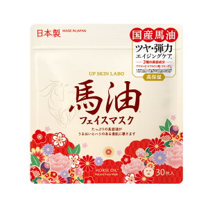 商品名 UPSKIN LABO 馬油ナチュラルフェイスマスク 30P 仕様 内容量:30枚入り JAN:4595057256013 製造国:日本製 製造販売元:有限会社進製作所 販売元:up groove...