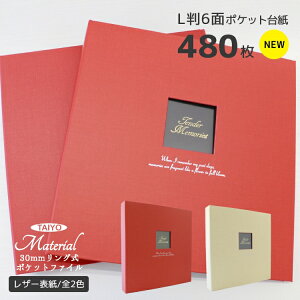 レザー表紙(中綿入り) 台紙 ポケット式L判6面写真シート40枚付き(480枚収納) 仕様 リングファイル 丸型4穴 備考 ・20枚シート付(L判240枚収納)と40枚シート付(L判480枚収納)はあらかじめ...