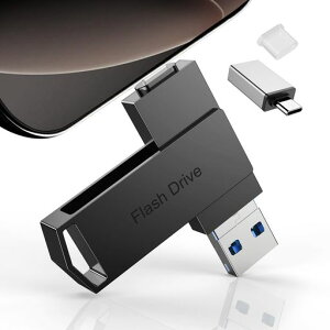 iPhone USBメモリー [Apple MFi認証 iOS 15/16対応] 2 in 1 Lightning+ USB Type-C端子 外付けメモリ 写真・動画バックアップ 外部ドライブ ストレージ 回転式 フラッシュメモリ ...