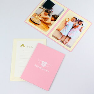 【基本仕様】 2Lサイズ収納、2ツ折2面(タテ・タテ) 【材質】 表紙:紙(タント紙/100kg両面合紙) ポケット:紙(タント紙/100kg) メッセージカード:紙(マーメイド紙/115kg)) 封筒:紙(ボ