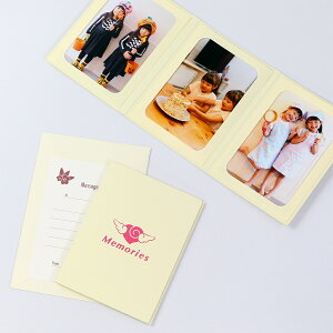 【基本仕様】 2Lサイズ収納、3ツ折3面(タテ・タテ・タテ) 【材質】 表紙:紙(タント紙/100kg両面合紙) ポケット:紙(タント紙/100kg) メッセージカード:紙(マーメイド紙/115kg)) 封筒:紙