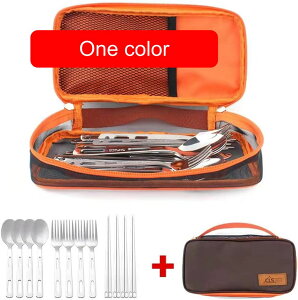 【プレミアムキャンプ料理】---13個のキャンプ調理器具キッチンステンレス製ステル器具セットには、フォーク4個+スプーン4個+箸4本+カトラリー収納ケース1個が含まれています。この器具セットのすべて