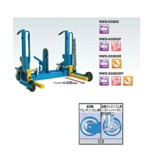 能力:500kg●揚程:305mm●全長:645mm●全幅:925mm●フォーク最低位:80mm●フォーク最高位:385mm●フォーク傾斜角度:±3°●適応タイヤ径:590〜1160mm●重...