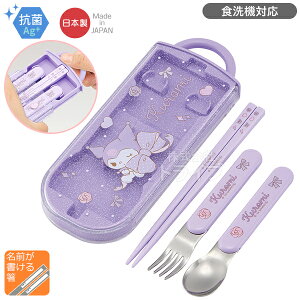 クロミのスプーン・フォーク・お箸の3点セットです。スライド式の収納ケースは指で引き出して開けやすく、分解できるのでお手入れも簡単。銀イオンの抗菌加工で菌の繁殖を抑えます。かわいいデザインでランチタイムを楽しく♪サイズケ