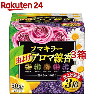 商品名:フマキラー 虫よけ アロマ線香 50巻入 函入り 5色パック内容量:50巻入JANコード:4902424437843発売元、製造元、輸入元又は販売元:フマキラー株式会社商品番号:103-490...