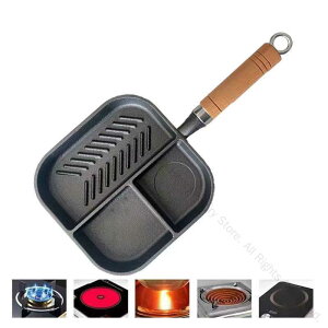 ?【フライパン 3in1 同時調理】3つの穴があるこのフライパンは、目玉焼き、餃子、パンケーキといった多様な料理を一度に調理できる独自の3つの区分けられたセクションを備えています。時間とエネルギーの節約に加えて...