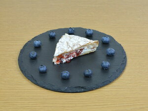スレートとは天然石(粘板岩)を板状に切り出して作られたお皿です。裏面には傷防止のクッションが貼ってあります。縁は砕いたそのままの状態で、天然素材ならではの無骨な質感が魅力です。