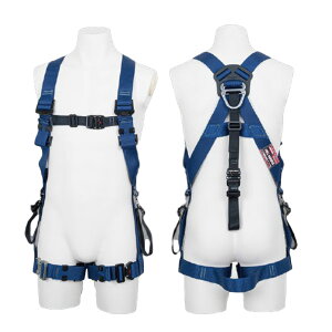 仕様:フルハーネス本体のみ ベルト色:ネイビー サイズ:M、ベルト幅:45mm、胸ベルト幅:28mm、胴ベルト:なし(別売) 背部ベルト:X型、腿ベルト:水平型、腿バックル:ワンタッチバックル 重量:約1,945g...