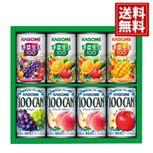 100%フルーツジュースの「KAGOME 100CAN」と野菜&フルーツの「野菜生活100」を詰合せたギフトです。 ●セット内容:野菜生活100(オリジナル×2・ベリーサラダ・マンゴーサラダ)各160g...