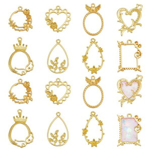 (MUNCVY) レジン枠 空枠 フレーム パーツ ゴールド 8種16個 セット uvクラフト 大量 カン付き 香水瓶 美しい セッティング アクセサリーパーツ から枠 ハンドメイド 手作り uvレジン...