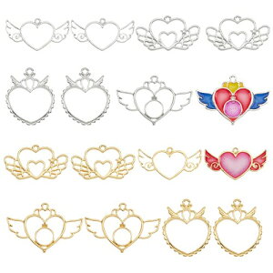 OLYCRAFT 16個 レジン枠 レジン空枠 ハート 羽 空枠 レジンフレーム 手作り DIY ハンドメイド 素材 ジュエリー アクセサリーパーツ 【サイズ詳細】38x32x4mm、穴2.6mm;23x41.5x2.5mm...