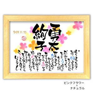 商品説明結婚される幸せな二人へのプレゼントとしてお名前を織り交ぜた素敵なポエムをオーダーメイドでお仕立てします。 一点一点心をこめた直筆文字で丁寧にお仕立する世界にひとつのネームインギフトです。 ※ポエム(文章)はお二