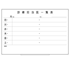 □フレーム幅わずか3mmでシャープなデザインのアルミ枠ホワイトボード□罫引(診療担当医一覧表)入りです 商品詳細罫引内容 診療担当医一覧表板面サイズ 890× 600 (mm)重量 3.0kg 主な材質...