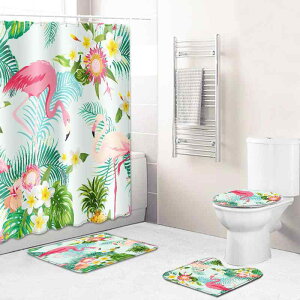・主な素材: ポリエステル・スタイル: ライトラグジュアリー・柄: フラミンゴ・カラー: フラミンゴ・サイズ・セット展開: 45x75cm 4点セット、45x75cm 3点セット、浴用カーテン2点セット(45x75cm、180x180...