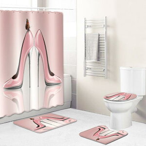 ・主要素材: ポリエステル・スタイル: ライトラグジュアリー・柄: ピンクブーツ・カラー: ピンク・サイズ・セット展開: 45×75cm 4点セット、45×75cm 3点セット、シャワーカーテン2点セット (45×75cm、180×1...