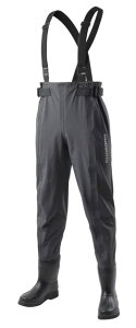 ◆生地は透湿防水のドライシールド4層生地を採用。動いた際の湿度を外へ放出しするのでムレにくいです。また耐摩耗性も高いレベルを実現。ブーツはあえて軽く、屈曲性の高いPVCブーツを採用。胸までカバーするチェストハイモデル。ソー