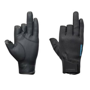 SHIMANO 釣り用グローブ ●摩擦に強く使うほどに指になじむカンガルー革採用 ●革は、パワフルなキャストでも負担のない硬さと、ラインの感覚が伝わる厚さにバランスよく設定 ●甲部のクロロプレンはパンチング素材で通気性を確保しムレ