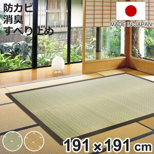 サイズ約 横191×縦191(cm)厚さ:約 0.5(cm)内容量1枚材質表面:国産い草100%(白部分:さらしい草)・掛川織裏面:不織布(滑りにくい加工)縁:綿100%種類ナチュラル、ベージュ生産国日本製備考・抗カビ加工を施していま...