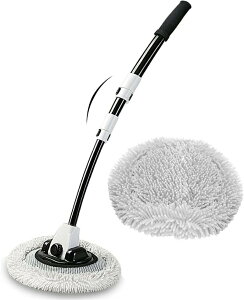 【多段階角度調整 + 多段階伸縮】:洗車モップ 15°の曲げ設計と180°回転するモップヘッドにより、ルーフやフロントガラスなどの狭い場所も楽に掃除できます。60cmから120cmまでの3段階の伸縮位置で、身長や状...