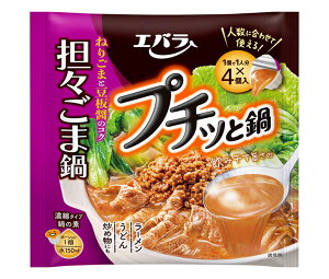 【 商品詳細 】プチッと鍋 担々ごま鍋 160g(40g×4個) 内容量 40g×4個 商品サイズ 170 X 50 X 170 (mm) 原材料名 ねりごま(国内製造)、砂糖、醤油、アミノ酸液、食塩、醸造酢、大豆油、白ごま、大豆粉、...