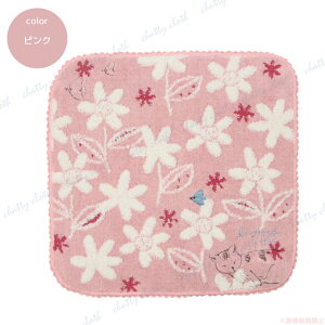 お花畑でまどろむネコ♪ジャガード織りとピコットの縁取りがカワイイ花柄タオルハンカチ♪
