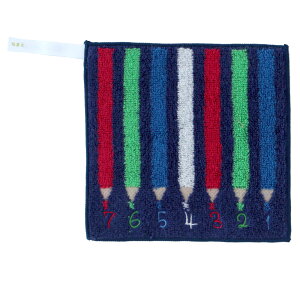 ) 品質:綿100%(スリット糸使用) 日本製 ポケットに収まりやすい15×15cm のチビタオル。 カラフルに並んだ色鉛筆の先には数字が刺繍で表現されています。 裏面には名前が書けるネームタ