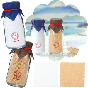 瓶入り牛乳をイメージした楽しいハンカチタオル 懐かしさを感じるレトロ風のデザインがポイント 瓶はペン立てや小物入れとして使用できます ※2色アソート、種類・色・柄の指定はお受けできません。 【本体サイズ】...