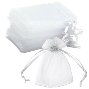 11*16cm オーガンジー 巾着 小 可愛い おしゃれ サシェ 袋 ポプリ袋 プレゼント 袋 ギフト お菓子 プチギフト アクセサリー 小物包装 誕生日 結婚式 ウェディング用 【サイズ】11×16cm、ホワイト...