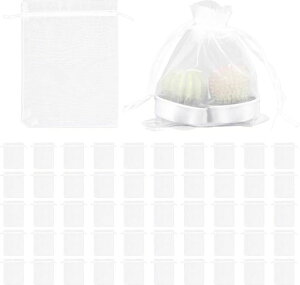 【美しい巾着袋】オーガンジー素材の美しさがあり、巾着袋のように使えます。透明な袋なので、中身が見えてプレゼントやギフトとして使用するのに最適です。 【便利なサイズと数量】10x12CMの小さなサイズでありながら、小物やポプリな