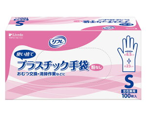 フィット リブドゥ リフレ プラスチック 手袋 粉付き Mサイズ 100枚入 使い捨て 感染防止 オムツ交換 トイレ掃除 清掃用 介護 ヘルパー用 ゴム手袋 〇使い捨てプラスチック手袋(粉つきタイプ)...