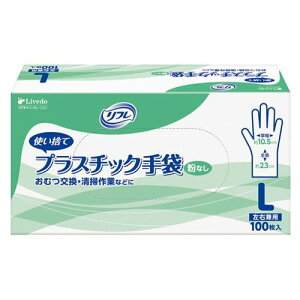 フィット リブドゥ リフレ プラスチック 手袋 粉付き Lサイズ 100枚入 使い捨て 感染防止 オムツ交換 トイレ掃除 清掃用 介護 ヘルパー用 ゴム手袋 〇使い捨てプラスチック手袋(粉つきタイプ)...