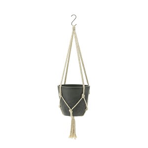 ●ナチュラルデザインの室内専用ハンギング 20型サイズ。シンプルな丸型フォルム。陶器に比べて軽量で、割れにくく、扱いやすい。やさしい風合いのナチュラルな吊具とS字フックのセット。底穴のないタイプで、水漏れの心配いらず。・サ