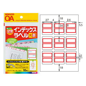 KOKUYO/インクジェットプリンタ用 紙ラベル タックインデックス ●1シートのラベル枚数が少ないので使いやすく、保管も場所をとりません。 ●簡単ラベル印字ソフト〈合わせ名人〉を使えば位置合わせが簡単に行えます。 ●インターネッ