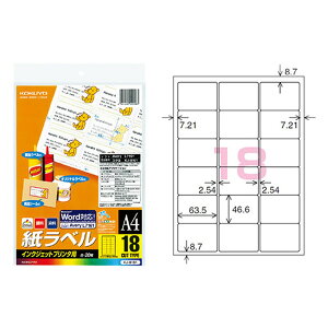 コクヨ 0120-201-594 【商品説明】MicrosoftRWord対応!専用のラベル作成ソフトが無くても簡単にラベル作成ができます。【商品仕様】サイズ:A4面数:18面1片の大きさ:46.6...