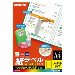 【商品名】 コクヨカラーレーザー&インクジェットプリンタ用紙ラベル (下地がかくせるタイプ) A4 ノーカット KPC-SK101-1001冊(100シート) 【ジャンル・特徴】 修正用途に適した...