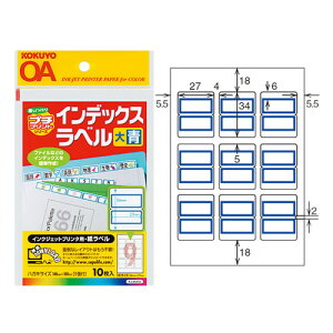KOKUYO/インクジェットプリンタ用 紙ラベル タックインデックス ●1シートのラベル枚数が少ないので使いやすく、保管も場所をとりません。 ●簡単ラベル印字ソフト〈合わせ名人〉を使えば位置合わせが簡単に行えます。 ●インターネッ